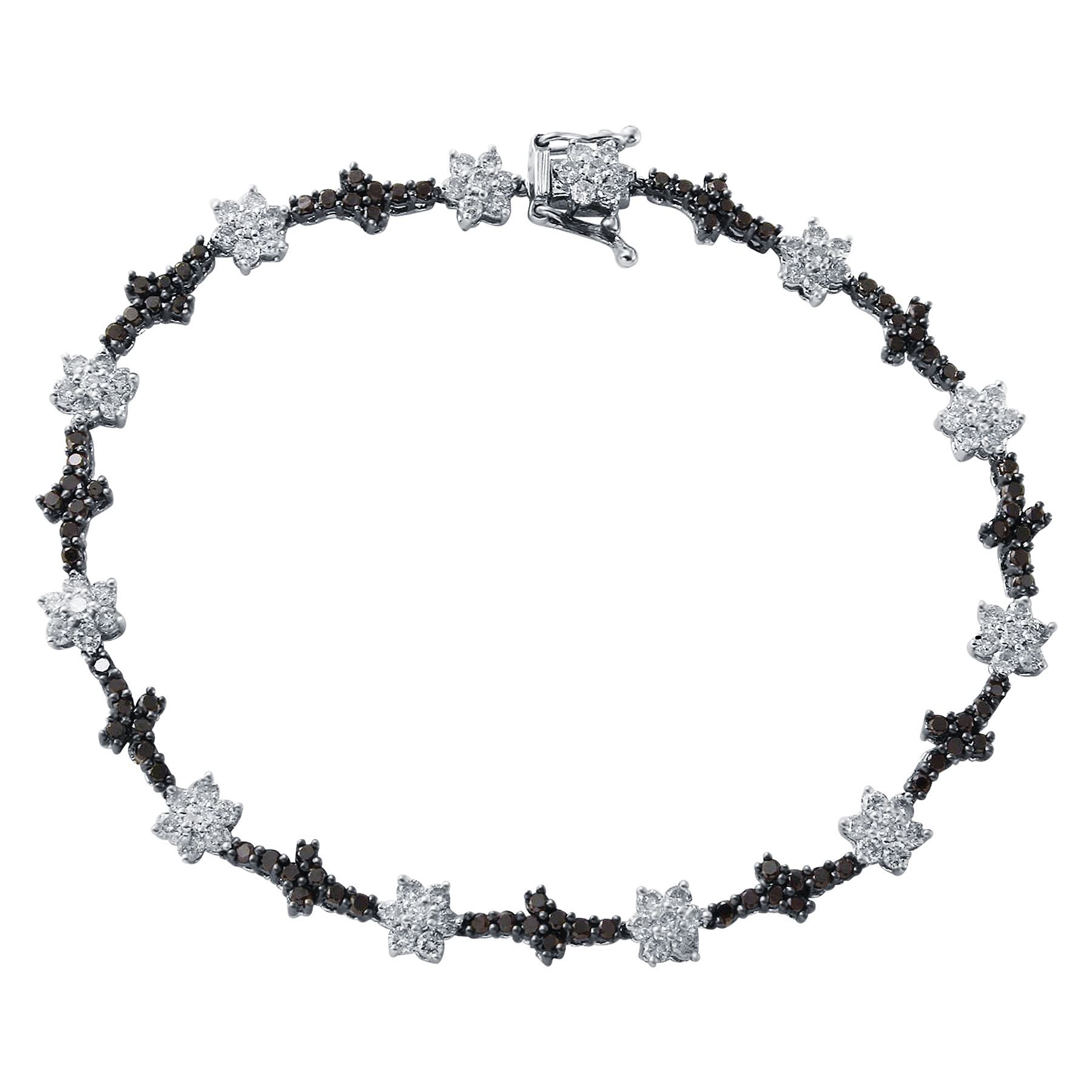 REF-129F6M ---- Natural 2.93 CTW Diamond & Black Round Diamond Bracelet 14K White Gold