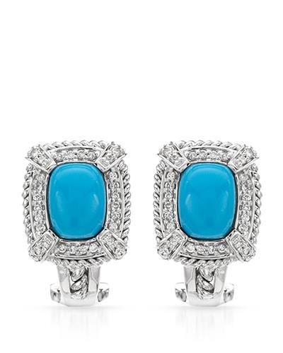 REF-79X2T ---- Natural 2.98 CTW Turquoise & Diamond Earrings 14K White Gold