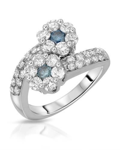 REF-174F6M ---- Natural 2 CTW Blue Round Diamond Ring 14K White Gold