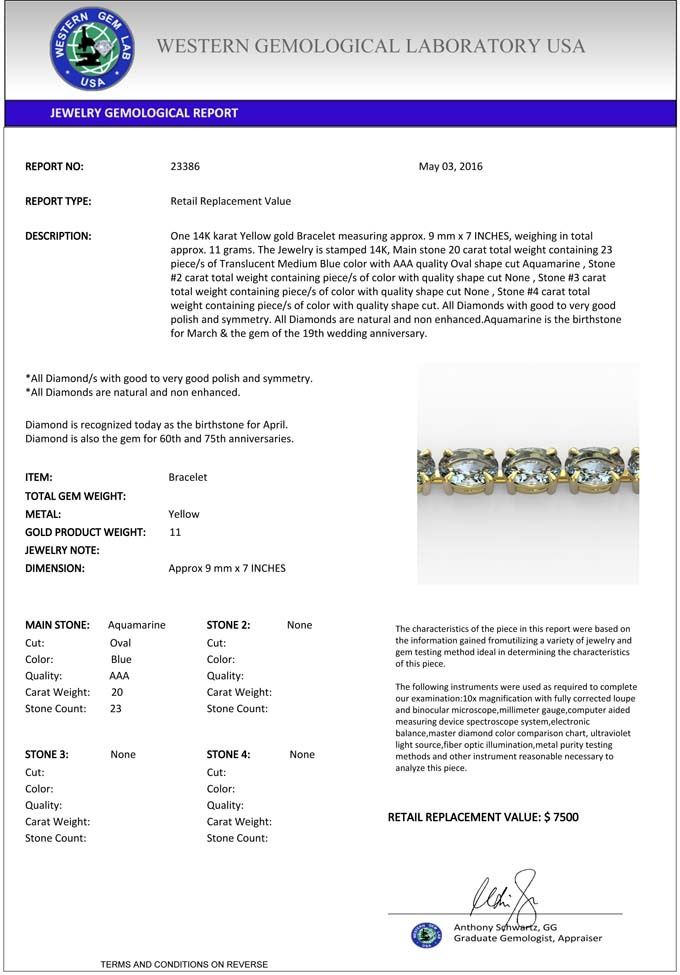total approx. 11 grams. The Jewelry is stamped 14K, Main stone 20 carat total weight containing 23 piece/s of Translucent Medium Blue color with