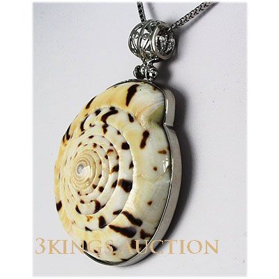 Natural 201.87ctw Mother Of PearlSea Shell Silver Neckl **|**|** Unique Design Sea Shell Mother of Pearl Sterling Silver Pendant 47.00mm Round ; MSRP: $300