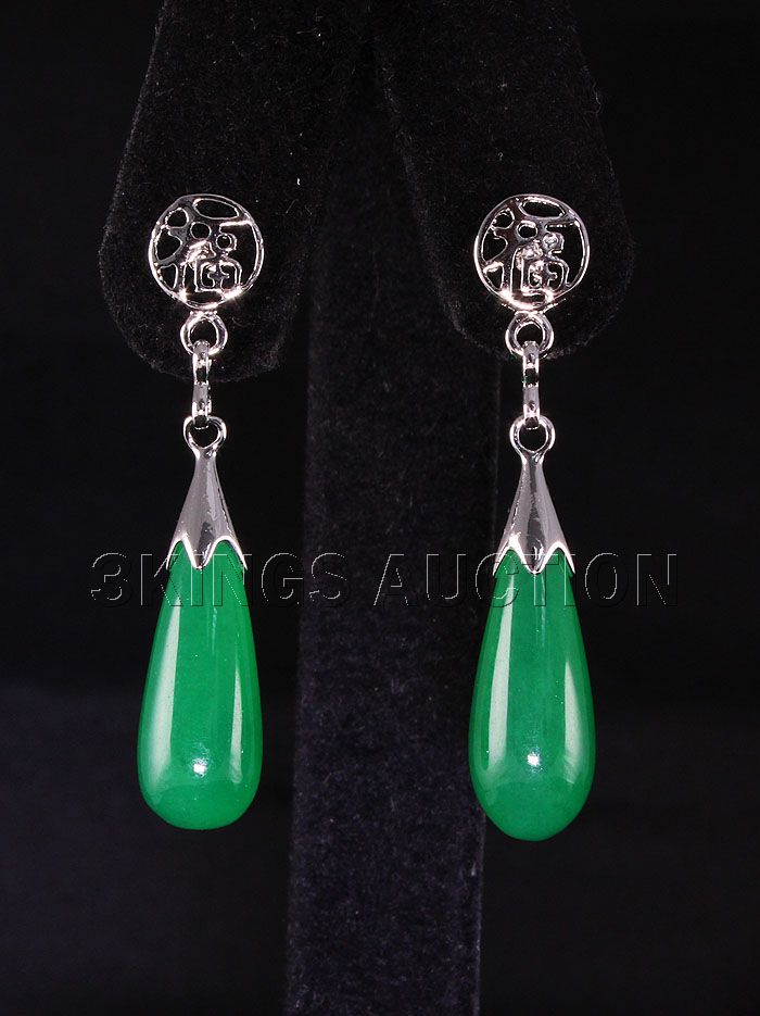 Natural 24.68ctw Green Jade Dangling Earring **|**|** Simple 18KGP (Gold Plated) Silver Chinese Green Jade Dangling Earring size: 26x8mm; length: 1.6 inches; color: Green; stone: Jade ; MSRP: $300