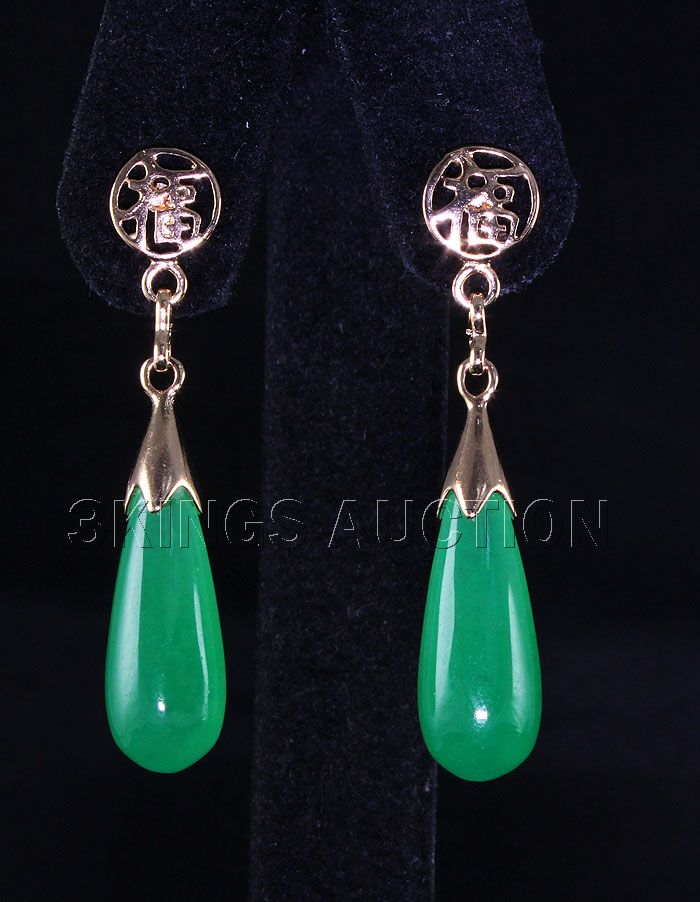 Natural 25.00ctw Green Jade Dangling Earring **|**|** Simple 18KGP (Gold Plated) Silver Chinese Green Jade Dangling Earring size: 26x8mm; length: 1.6 inches; color: Green; stone: Jade ; MSRP: $300