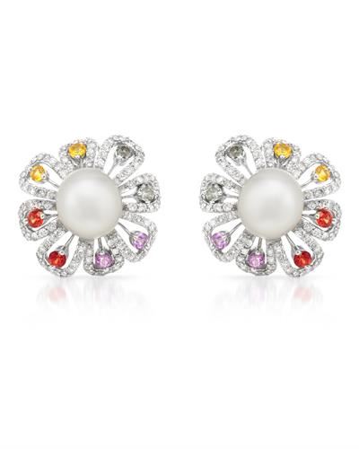REF-314N3Y ---- Natural 25.5 CTW Pearl & Diamond Earrings 14K White Gold