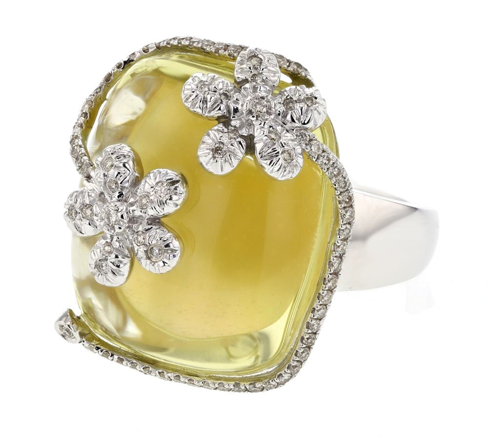 REF-117N9Y ---- Natural 28.26 CTW Quartz & Diamond Ring 14K White Gold