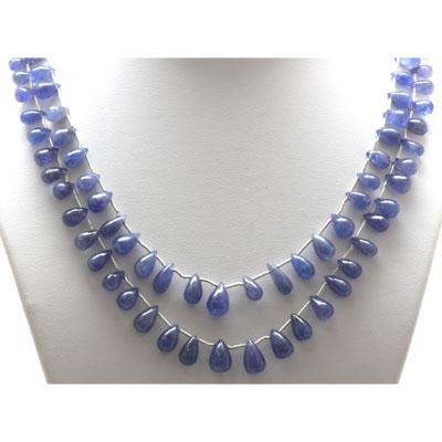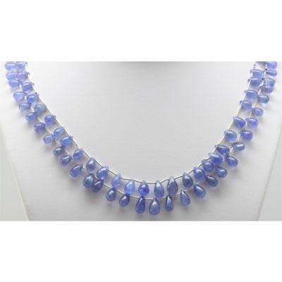 Total CTW: 140; Dia/Gem Count: Periwinkle Hue Blue. Semi-Opaque ; Dia / Gem Shape :Smooth teardrop briolettes ; Cut / Color: Excellent smooth, polished cut. Fantastic Natural colour. ; MSRP: $998