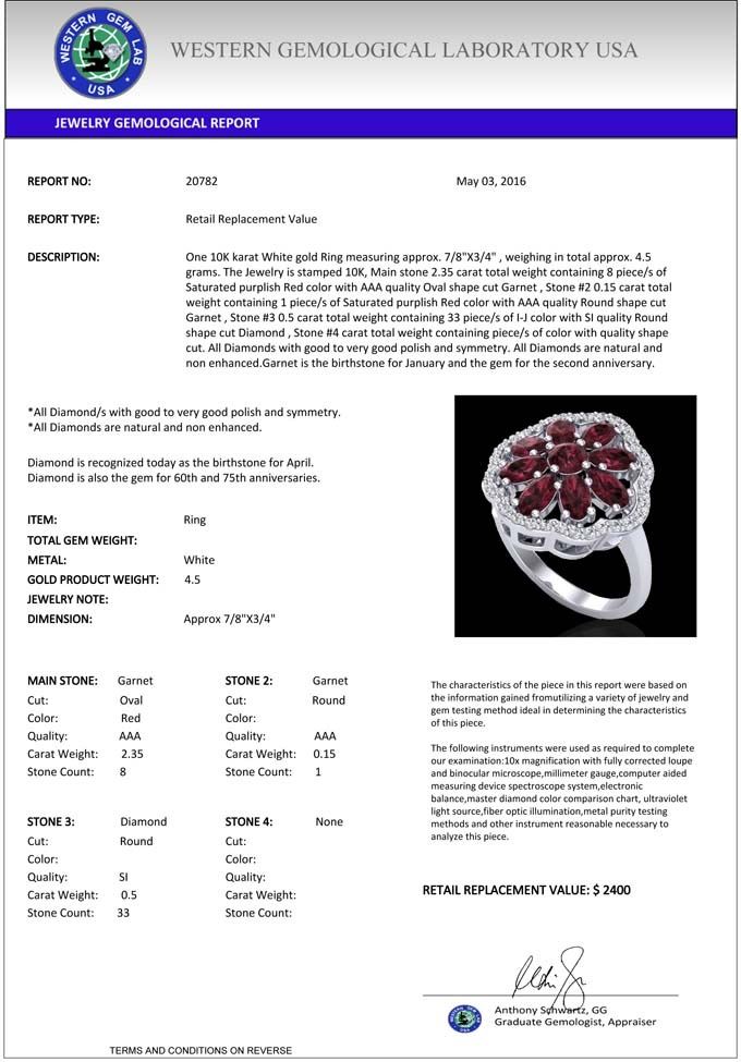 total approx. 4.5 grams. The Jewelry is stamped 10K, Main stone 2.35 carat total weight containing 8 piece/s of Saturated purplish Red color with