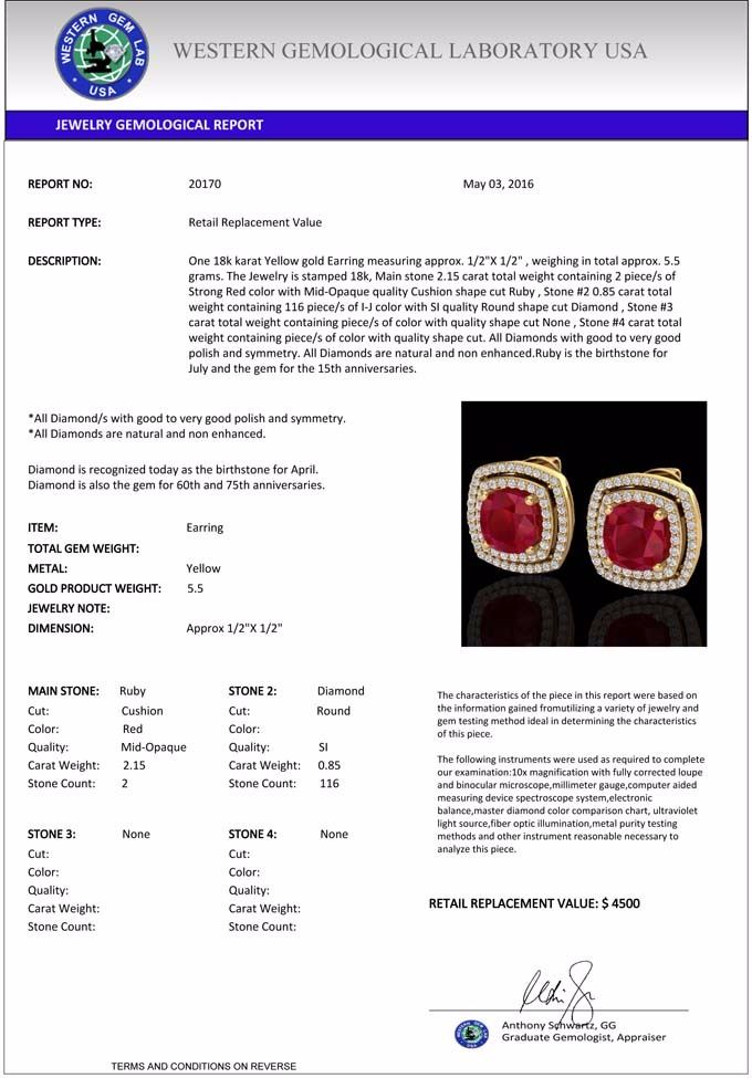 total approx. 5.5 grams. The Jewelry is stamped 18k, Main stone 2.15 carat total weight containing 2 piece/s of Strong Red color with