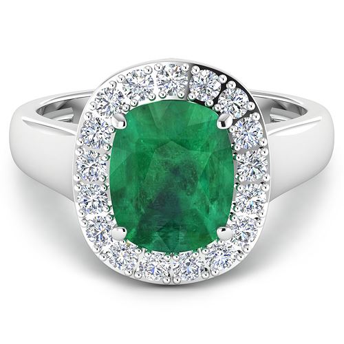 Zambian Emerald Cushion/10x8mm - 1/2.50 ctw Natural Heat Treated E + White Diamond Round/2.00mm - 17/0.51 ctw Prong Setting Natural Not Treated N