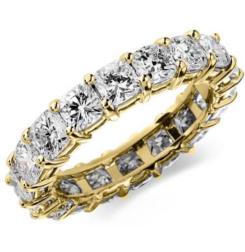 Natural 3.02 CTW Cushion Cut Diamond Eternity Ring 14KT Yellow Gold