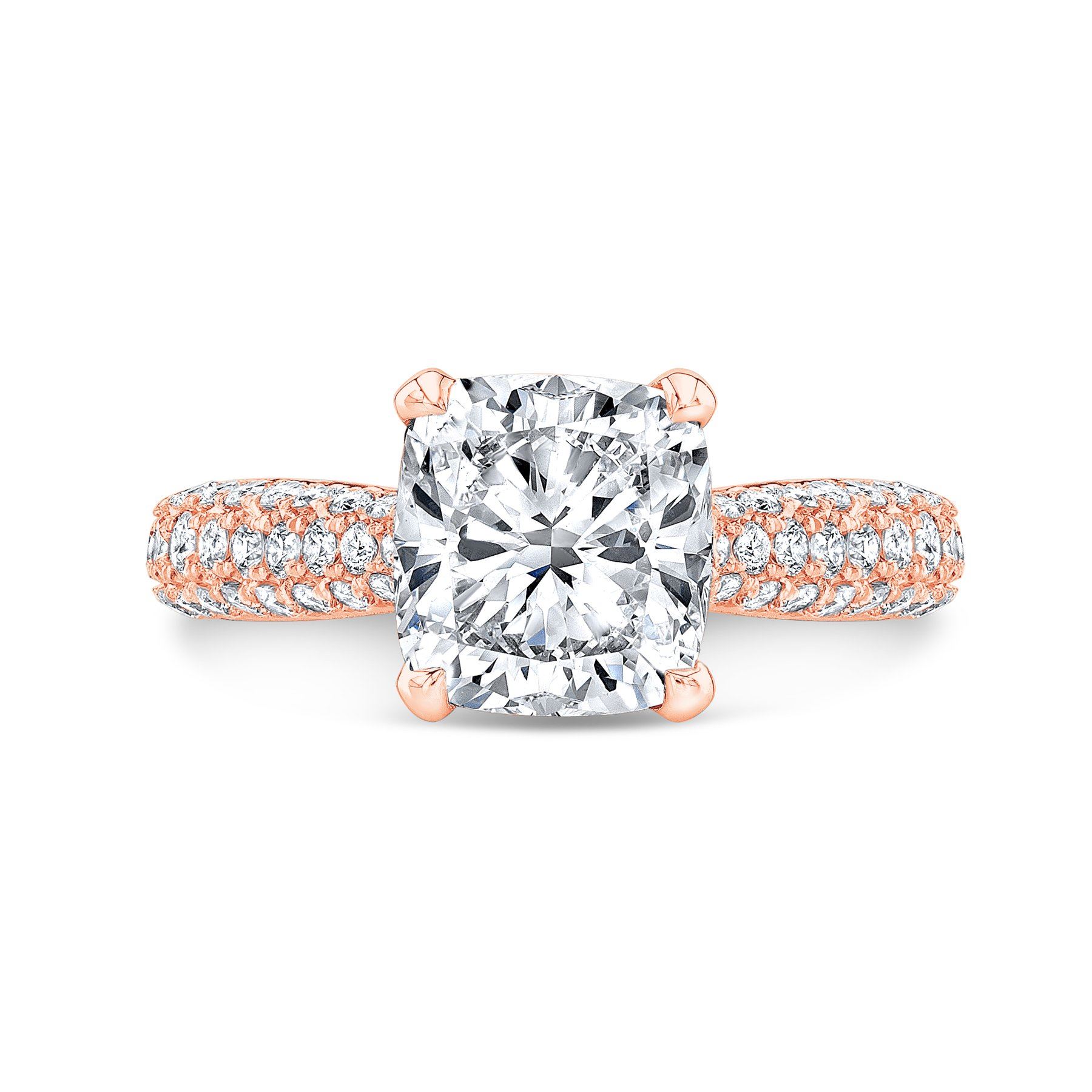 Natural 3.02 CTW Cushion Cut Micro Pave Diamond Engagement Ring 18KT Rose Gold