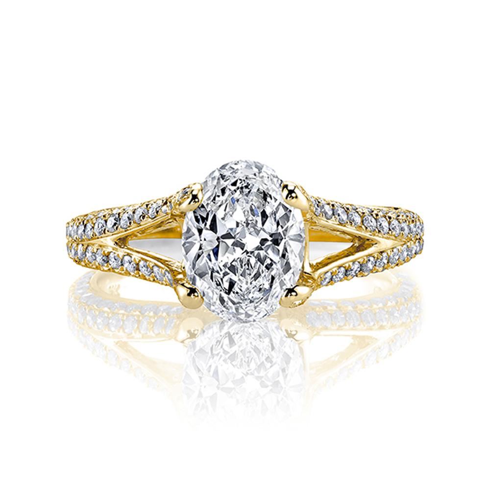 Natural 3.02 CTW Oval Cut Diamond Split Shank Engagement Ring 14KT Yellow Gold