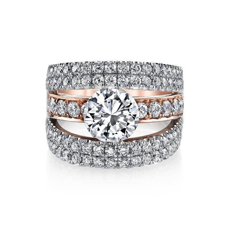 Natural 3.02 CTW Round Cut Pave Set Split Shank Engagement Ring 14KT Two Tone