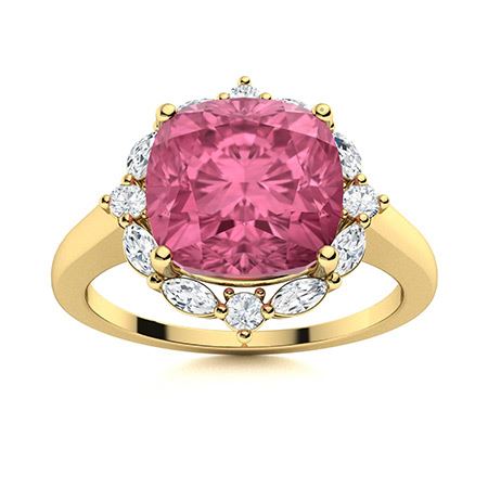 Natural 3.05 CTW Tourmaline & Diamond Engagement Ring 18K Yellow Gold