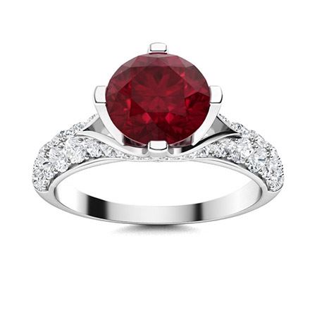Natural 3.08 CTW Ruby & Diamond Engagement Ring 14K White Gold