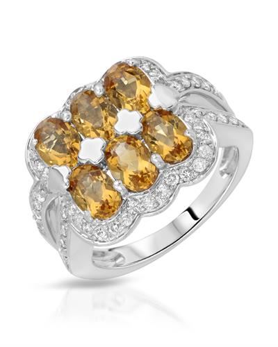REF-88M2F ---- Natural 3.09 CTW Citrine & Diamond Ring 18K White Gold