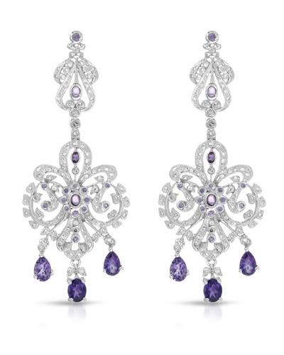 REF-216T2X ---- Natural 3.11 CTW Amethyst & Diamond Earrings 18K White Gold
