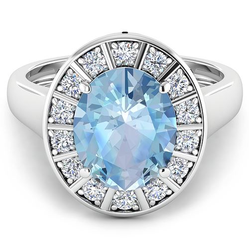 Aquamarine Oval/11x9mm - 1/2.70 ctw Natural Heat Treated E + White Diamond Round/2.00mm - 14/0.42 ctw Prong Setting Natural Not Treated N