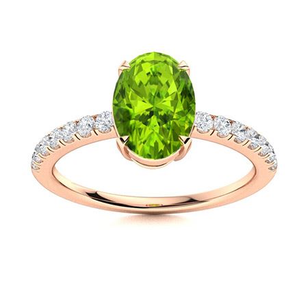 Natural 3.22 CTW Peridot & Diamond Engagement Ring 18K Rose Gold