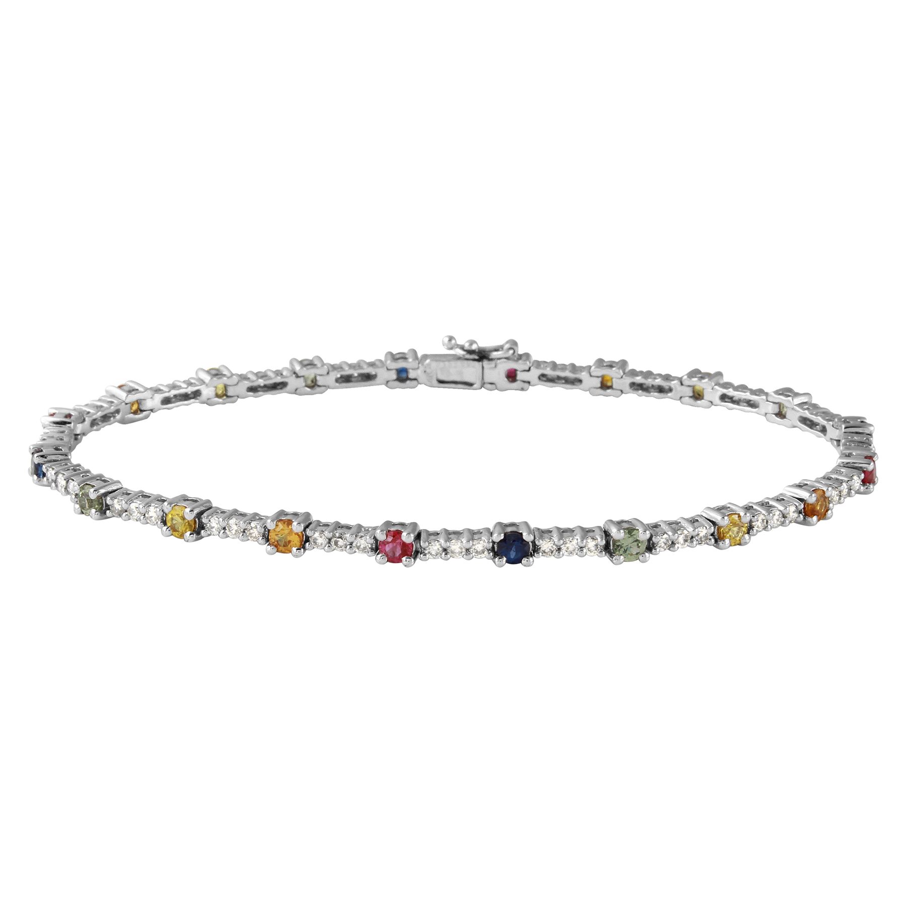 REF-127T8X ---- Natural 3.23 CTW Multi-Sapphire & Diamond Bracelet 14K White Gold