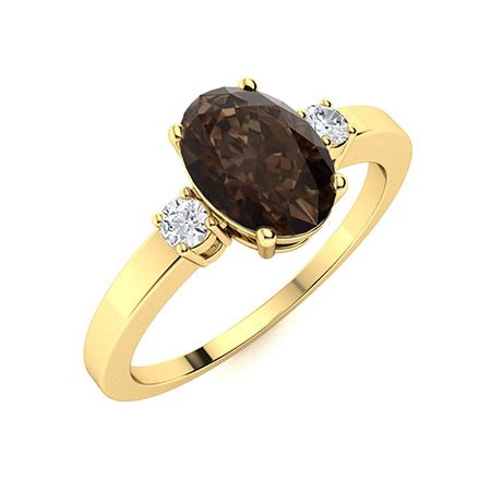 Natural 3.26 CTW Smoky Quartz & Diamond Engagement Ring 18K Yellow Gold