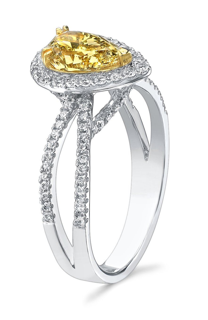 Natural 3.27 CTW Pear Cut Canary Light Yellow Diamond Engagement Ring 14KT Two-tone