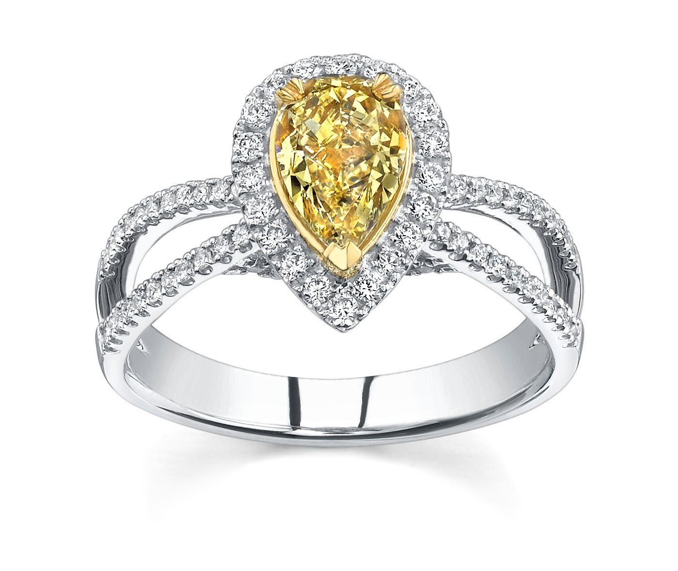 Natural 3.27 CTW Pear Cut Canary Light Yellow Diamond Engagement Ring 18KT Two-tone