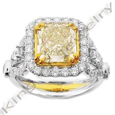 Natural 3.28 CTW Canary Yellow Radiant Cut Diamond Ring 14KT Two-tone