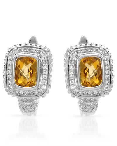 REF-101X7T ---- Natural 3.30 CTW Citrine & Diamond Earrings 14K White Gold