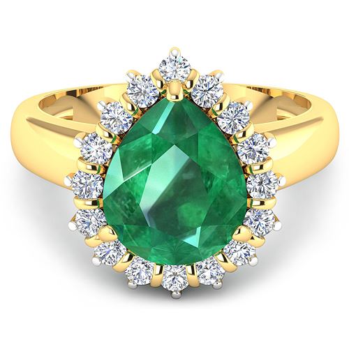 Zambian Emerald Pears/11x9mm - 1/2.85 ctw Natural Heat Treated E + White Diamond Round/2.00mm - 16/0.48 ctw Prong Setting Natural Not Treated N