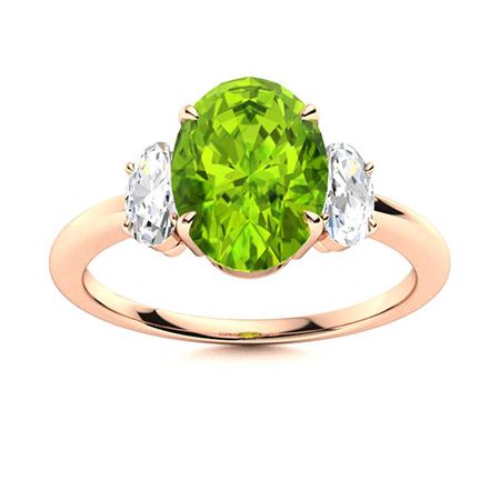 Natural 3.46 CTW Peridot & Diamond Engagement Ring 14K Rose Gold