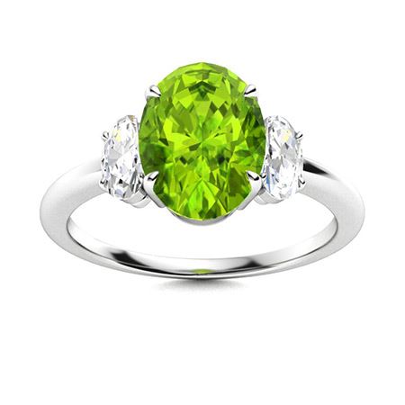 Natural 3.47 CTW Peridot & Diamond Engagement Ring 18K White Gold