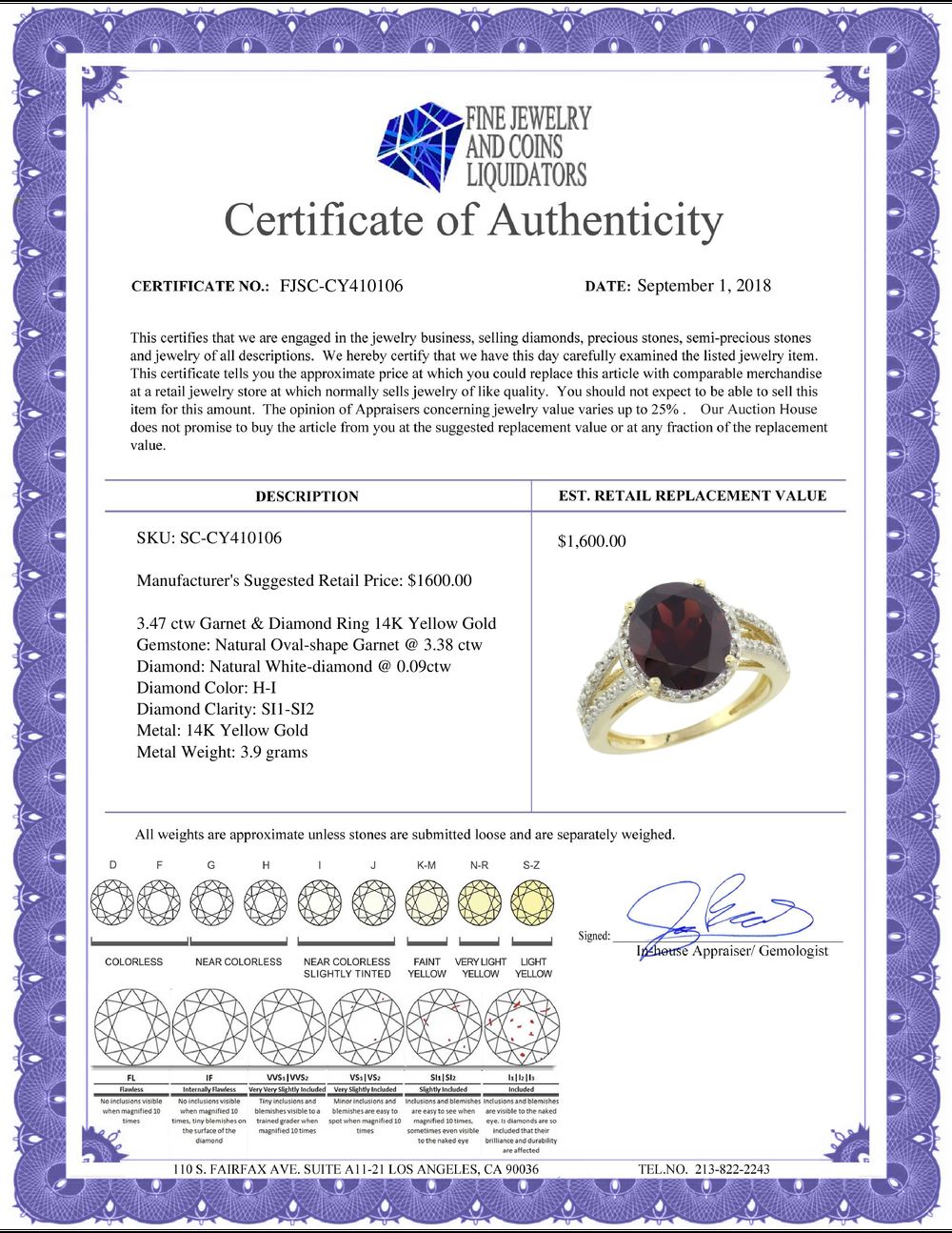 All Gia and EGL Diamonds are subject to availability due to consignors’ terms with us.