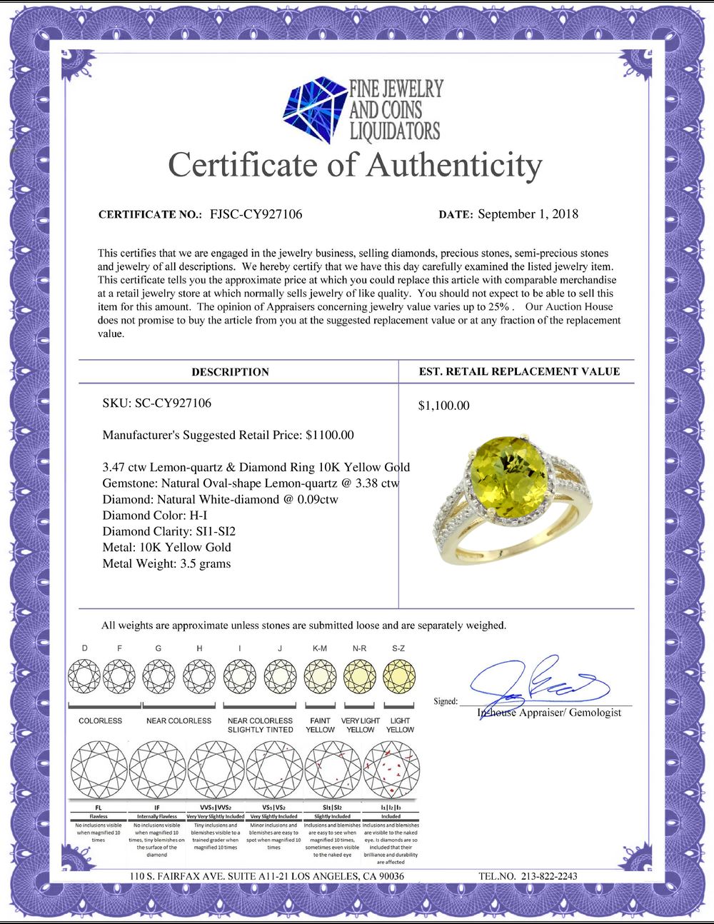 All Gia and EGL Diamonds are subject to availability due to consignors’ terms with us.