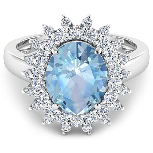 REF-135K5W - Natural 3.49 CTW Aquamarine & Diamond Ring 14K White Gold - REF-135K5W
