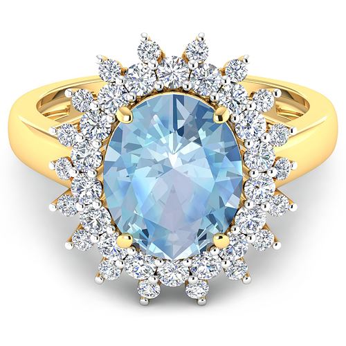 REF-135H5M - Natural 3.49 CTW Aquamarine & Diamond Ring 14K Yellow Gold - REF-135H5M