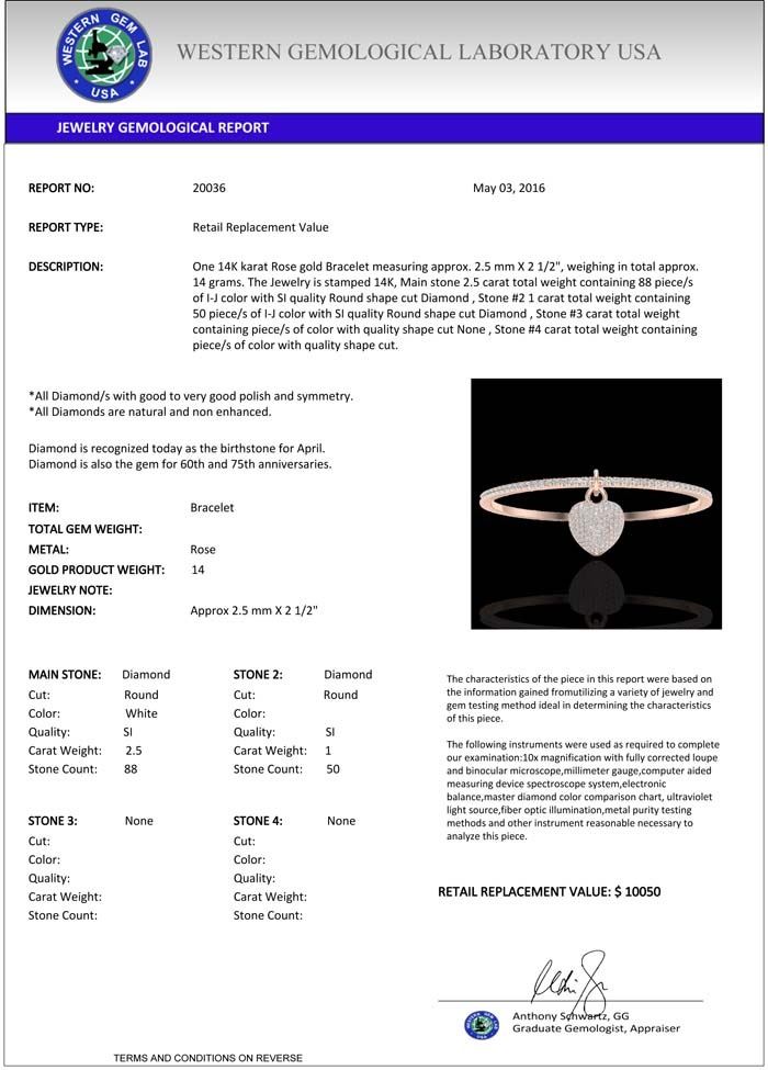 total approx. 14 grams. The Jewelry is stamped 14K, Main stone 2.5 carat total weight containing 88 piece/s of I-J color with