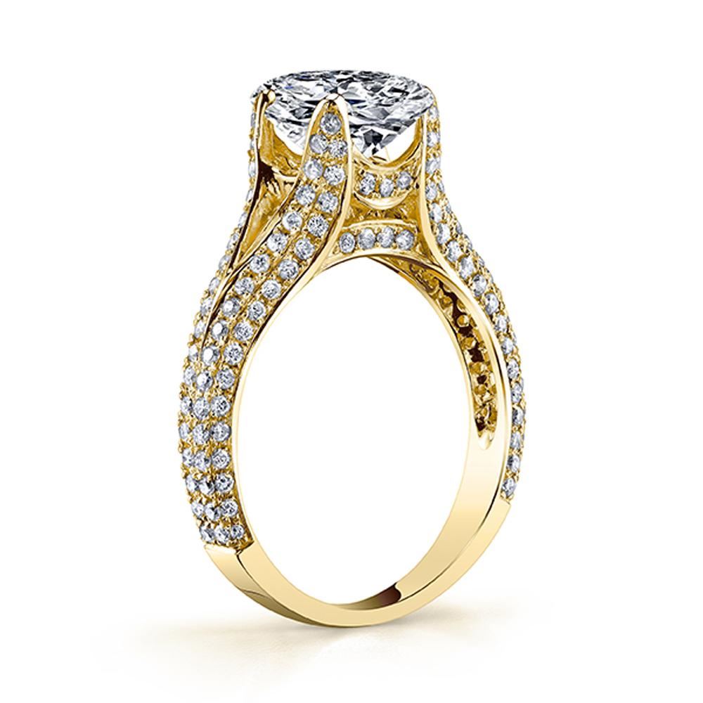 Natural 3.52 CTW Oval Cut Diamond Split Shank Engagement Ring 14KT Yellow Gold