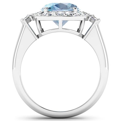 Aquamarine Oval/11x9mm - 1/2.70 ctw Natural Heat Treated E + White Diamond Baguette/2.00x1.50x1.10mm - 11/0.34 ctw Prong Setting Natural Not Treated N