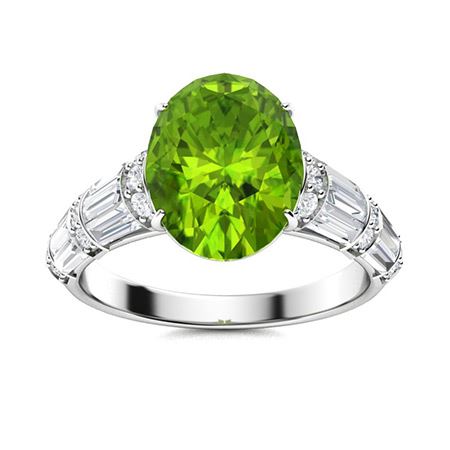 Natural 3.57 CTW Peridot & Diamond Engagement Ring 18K White Gold