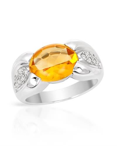 REF-54F9M ---- Natural 3.58 CTW Citrine & Diamond Ring 14K White Gold