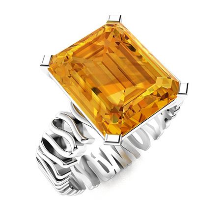 Natural 3.72 CTW Citrine Solitaire Ring 18K White Gold