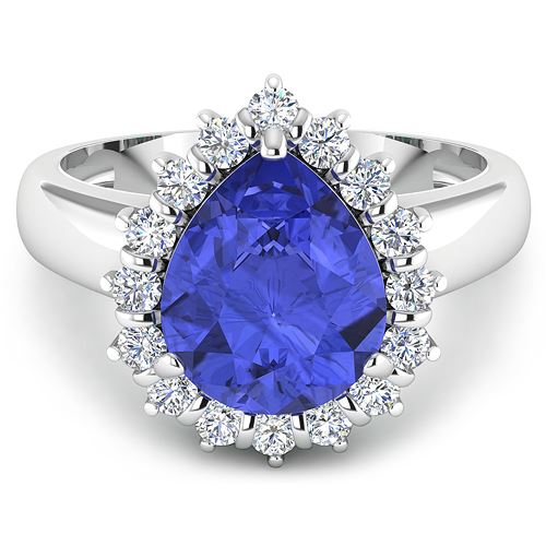 Tanzanite Pears/11x9mm - 1/3.25 ctw Natural Heat Treated E + White Diamond Round/2.00mm - 16/0.48 ctw Prong Setting Natural Not Treated N