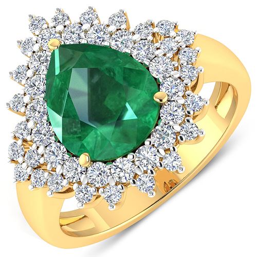 Zambian Emerald Pears/11x9mm - 1/2.85 ctw Natural Heat Treated E + White Diamond Round/2.00mm - 18/0.54 ctw Prong Setting Natural Not Treated N