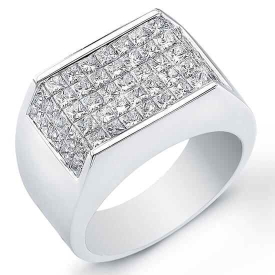 Natural 3.77 CTW Men's Invisible Set Princess Cut Diamond Ring 14KT White Gold