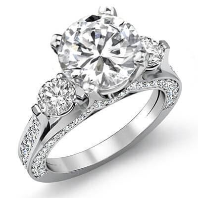 Natural 3.82 CTW Round Cut 3-Stone Micro Pave Diamond Ring 18KT White Gold