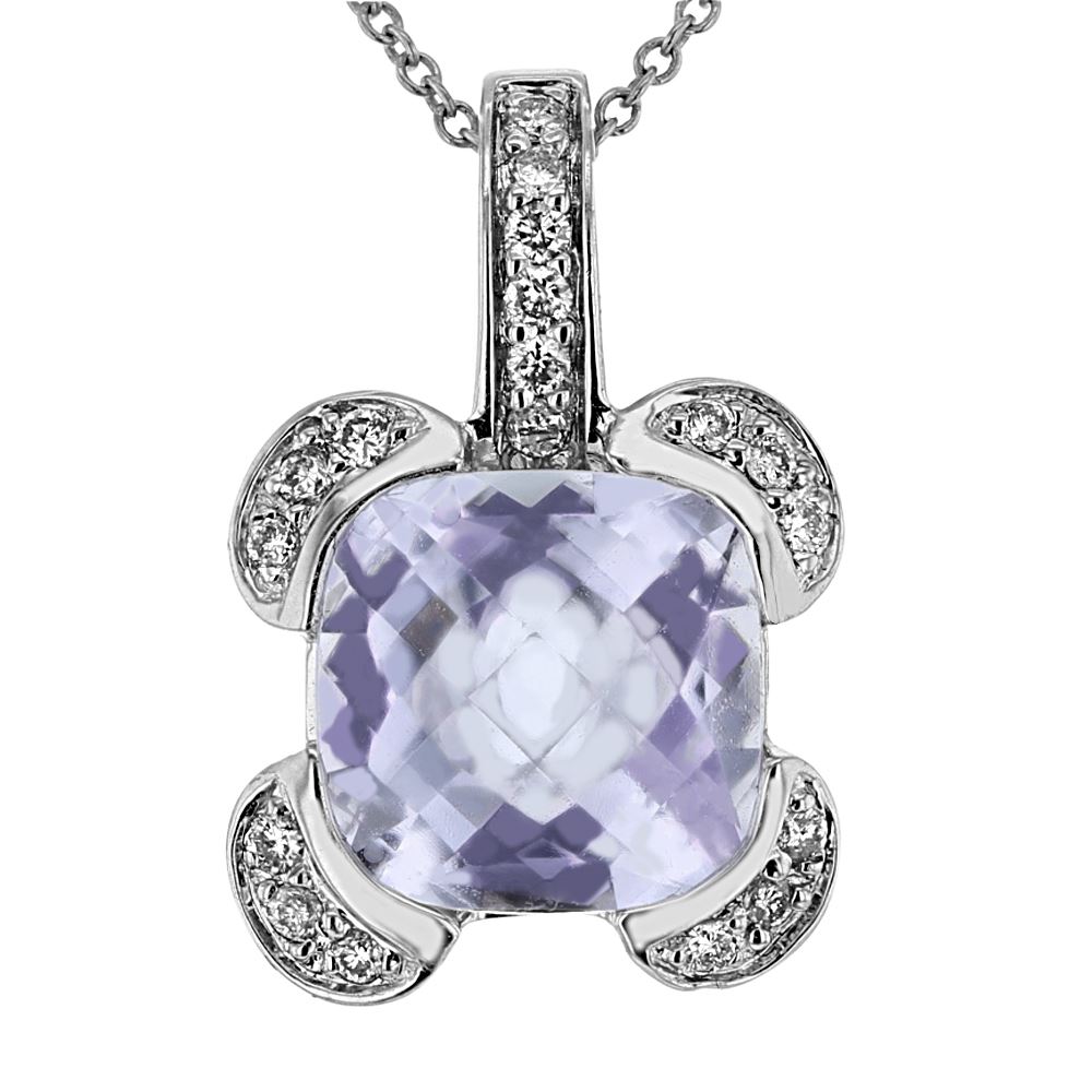 REF-45F9M ---- Natural 3.83 CTW Amethyst & Diamond Necklace 14K Gold