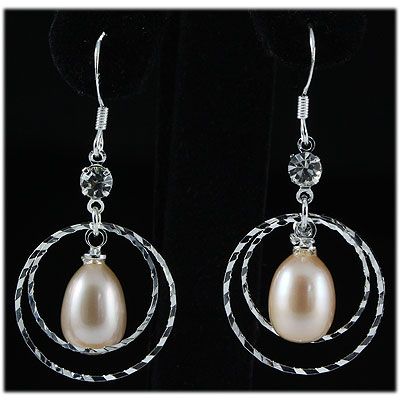 Natural 3.83g Pearl Dangling Sterling Silver Earring **|**|** Diamond Cut Design Sterling Silver Earring w/ Peach Color Fresh Water Pearl 8-8.5mm in size and cz diamond ; MSRP: $300