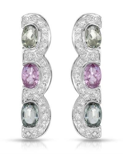 REF-101M7F ---- Natural 3.86 CTW Multi-Sapphire & Diamond Earrings 14K White Gold