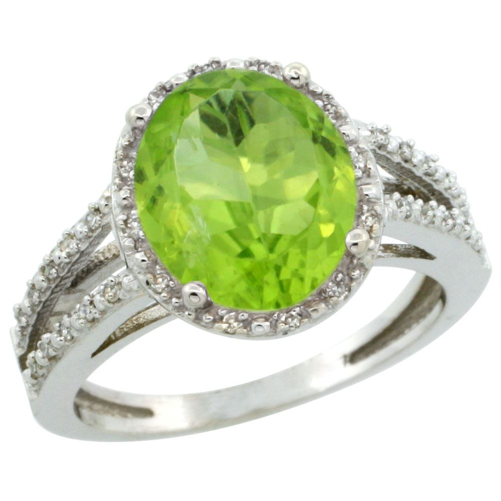 REF-40Z7Y ---- SKU:SC-CW911106 ---- Manufacturer's Suggested Retail Price - $1300.00 ---- Natural 3.86 ctw Peridot & Diamond Engagement Ring 10K White Gold